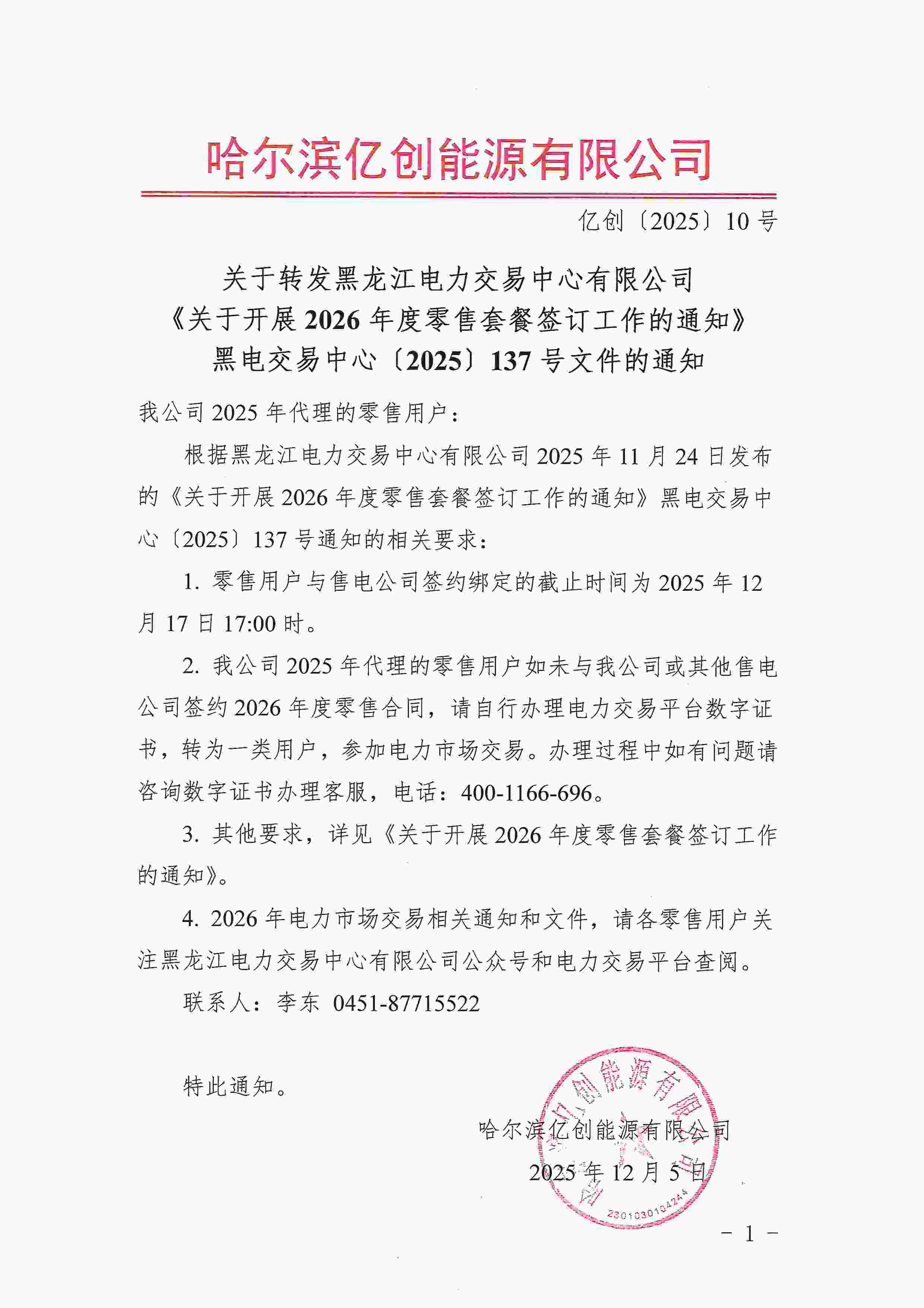 关于转发黑龙江电力交易中心有限公司《关于开展2026年度零售套餐签订工作的通知》的通知